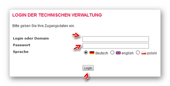 Wir öffnen nun die Startseite des Kundenadministrationssystems (KAS) und loggen uns mit den vom Provider erhaltenen Zugangsdaten ein: