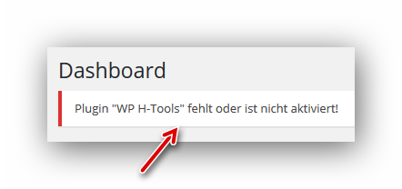 <p><?php _e( 'Plugin "WP H-Tools" fehlt oder ist nicht aktiviert!' ); ?></p> <!-- Meldung ausgeben -->