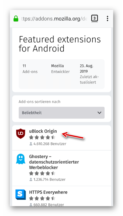 Die aufdringliche und nervende Werbung kann den Benutzer schon zur Weißglut bringen. Daher ist es Selbstschutz, diesen Müll weitmöglichst abzublocken. Zum Surfen im Internet ist der bekannte Browser “Firefox” auch für das Smartphone gut geeignet. Deshalb empfiehlt es sich, das Firefox-Add-on “UBlock Origin” wie am PC/Laptop auch auf dem Smartphone zu installieren.